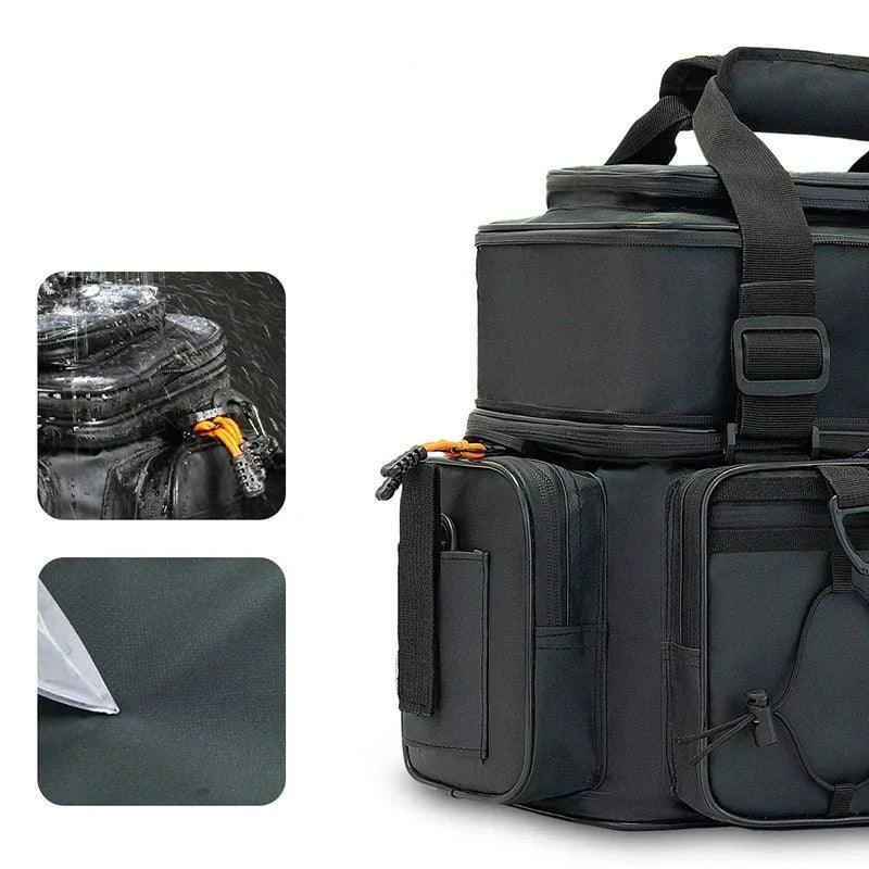 AMochila de Pesca FishMasteré a solução definitiva para todos os seus problemas de armazenamento e transporte de equipamentos de pesca.