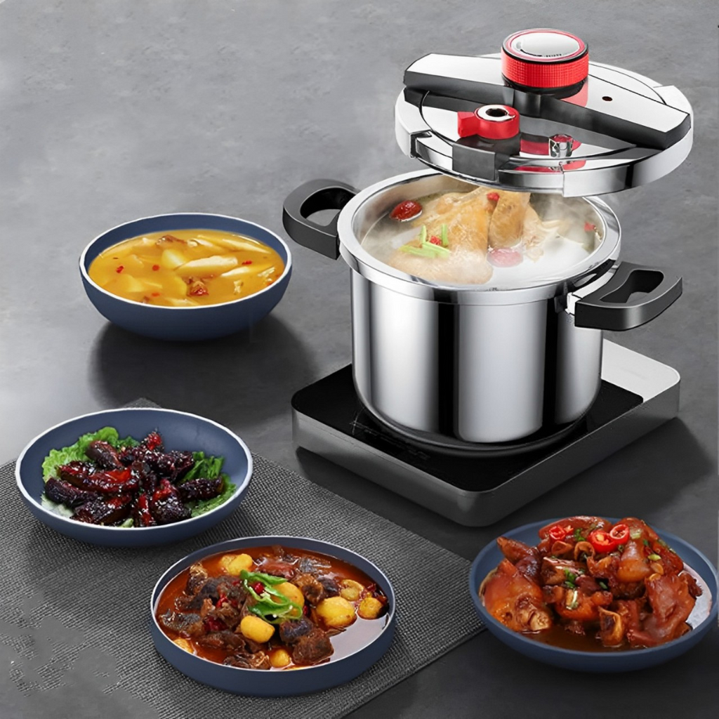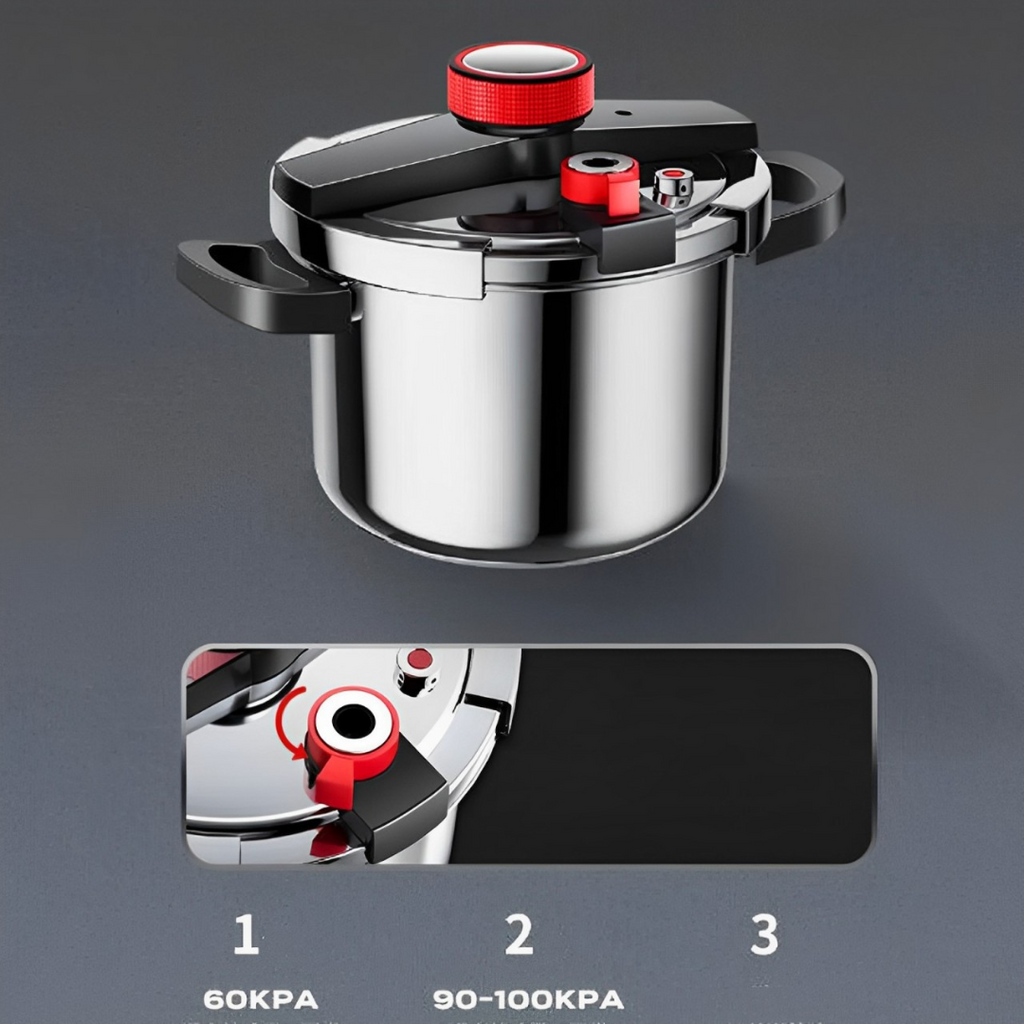 Uma estrutura em aço inoxidável de alta resistência garante que sua panela resista a altas pressões e temperaturas extremas , mantendo seu excelente desempenho mesmo após anos de uso .
